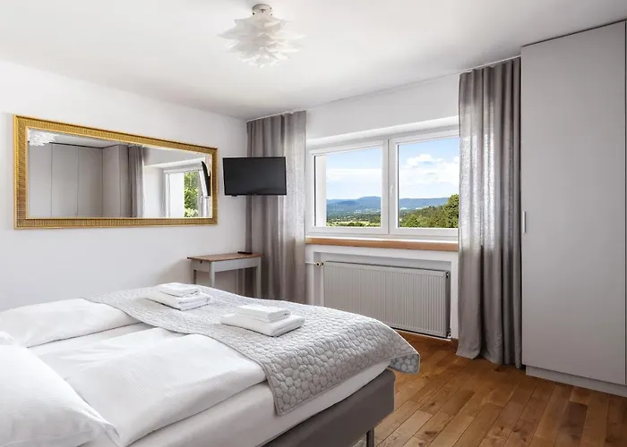 Das 63 m² große Apartament Z Widokiem Karpacz befindet sich in einem westlichen Viertel von Karpacz, knapp 4 Kilometer vom Meteorologischen Berg-Observatorium entfernt. Die Karpatka SKI Panorama ist in 450 Meter Entfernung zu den Apartments, während die Bushaltestelle Karpacz Osrodek zdrowia in einer 10 Gehminuten Entfernung von der Unterkunft ist.